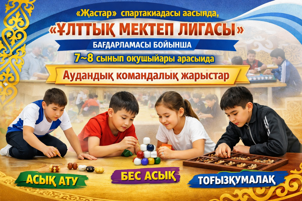 2026 жылғы 22 қаңтар күні «Жастар» спартакиадасы аясында, «Ұлттық мектеп лигасының» бағдарламасы бойынша 7–8 сынып оқушылары арасында Асық ату, Бес асық, Тоғызқұмалақ ұлттық спорт түрлерінен аудандық командалық жарыстар өтті.